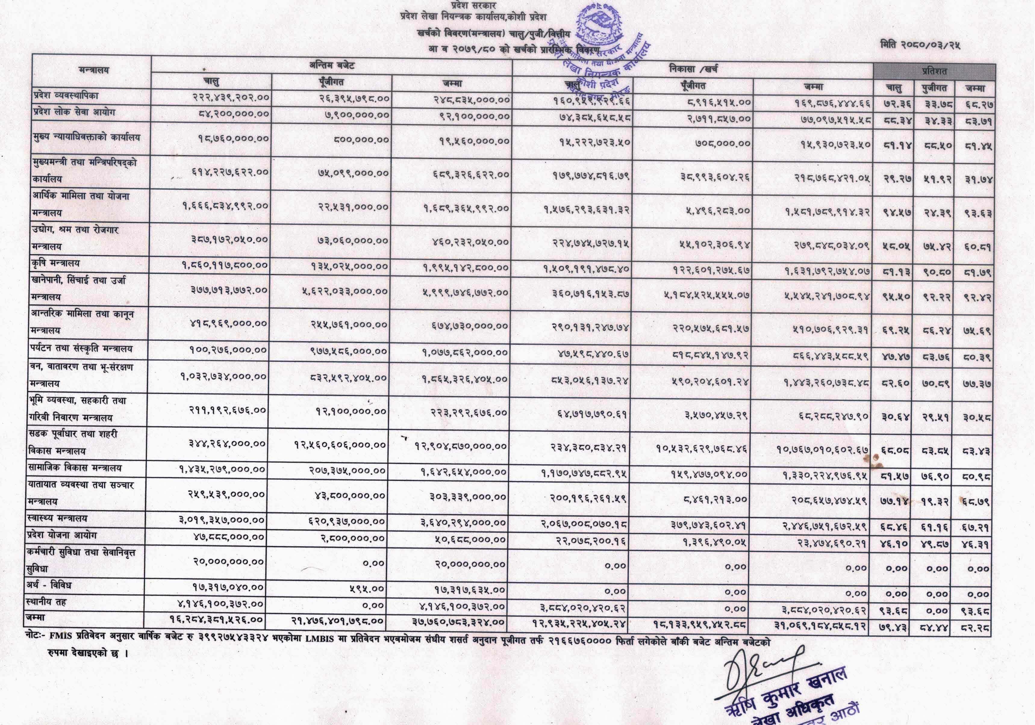 आ.व. 2079/80 को मन्त्रलयगत खर्चको प्ररम्भिक विवरण